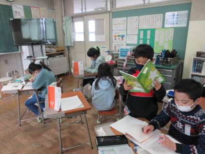 ある場面の一文から主人公の気持ちや様子を読み取っています。ペアでの学習も活発になってきました。