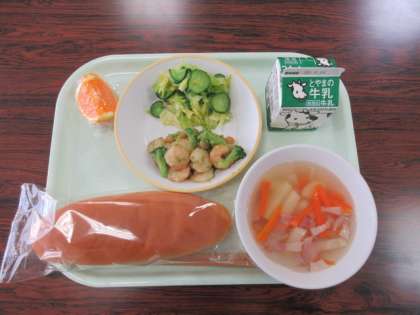 3月8日(火) 今日の給食 公開日 2022/03/08 更新日 2022/03/08 学校 行事 今日の献立は、 米粉コッペパン えびとひよこ豆のオリーブ炒め ポテトスープ きよみオレンジ 牛乳 でした。