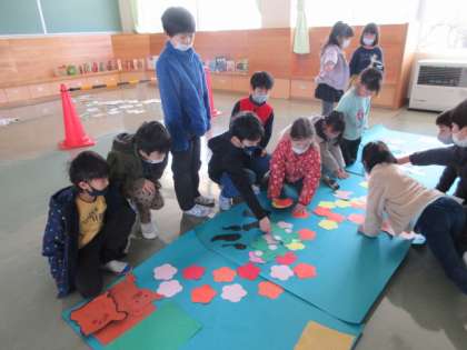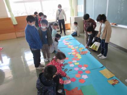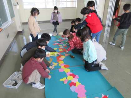 先日切り取っていた飾りの続きを「花のみち」に見立てて作っています。
