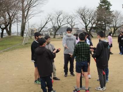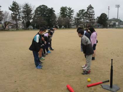 小学校生活最後の体育の授業。先生も交えてチームに分かれ、ティーベースボールを行いました。毎回チームを替え、たくさんの友達とふれあいながら、運動を楽しんでいました。