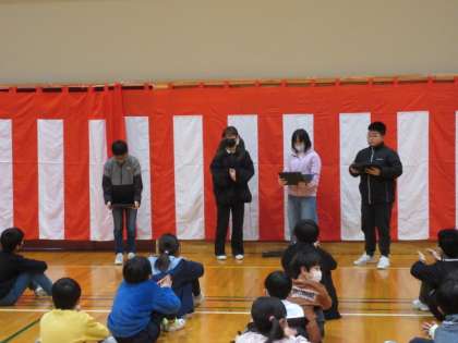 1年間を通して活動の中心であったなかよし班の解散式と解団式を行いました。