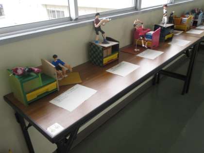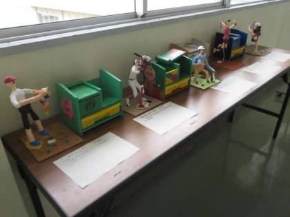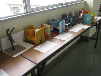 卒業記念の作品が仕上がり、廊下に並べられました。いよいよ明日は卒業式です。