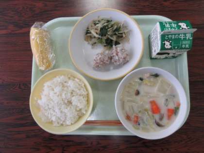 3月17日(木) 今日の給食 公開日 2022/03/17 更新日 2022/03/17 学校 行事 今日の献立は、ご飯 白菜の中華クリーム煮 チンズワンズ もやしとにらのソテー バナナ 牛乳 でした。