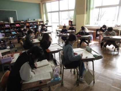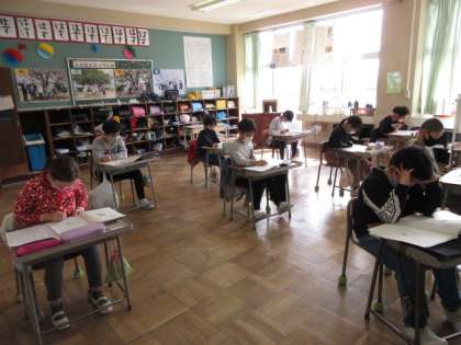 3・4年生はテスト中。真剣にまた悩みながら問題を解いています。