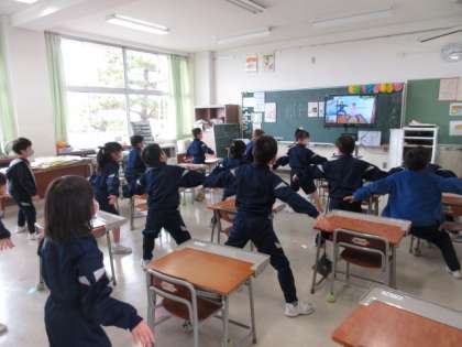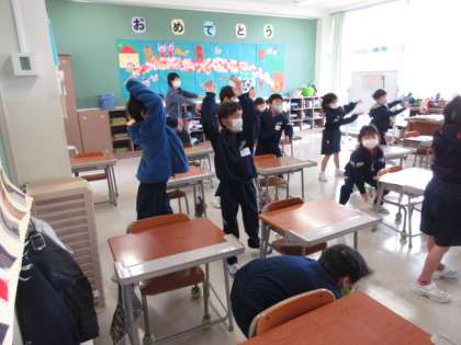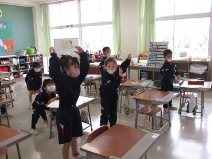 大学に合わせてリズムダンスを踊っています。みんなノリノリです。