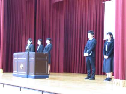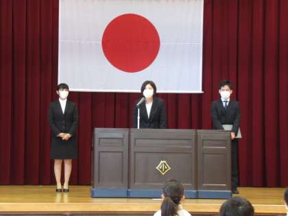 令和4年度、5名の教職員の方々が着任されました。一人ずつ自己紹介をされた後、子供たちは「よろしくお願いします」と元気に返事をしてました。