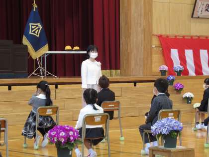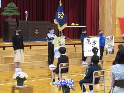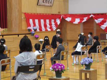 1年生15人が入学しました。姿勢よくお話を聞き、担任の先生から名前を呼ばれたときは、しっかり返事できました。6年生から紹介された八幡小学校の様子も集中して聞いていました。全校児童80人がそろい、令和4年度がスタートしました。