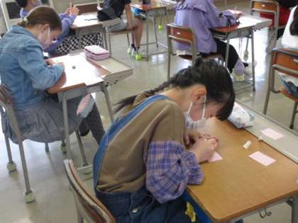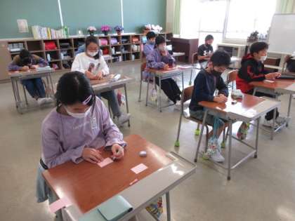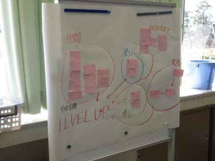 をどんなクラスになりたいか。一人一人の思いや考えを付箋に書いて貼り、話し合いました。