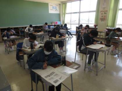 11日と12日、3〜6年生は学力調査を行い、今日は算数と社会でした。最後まで集中して取り組んでいます。