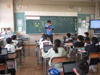 3年生と5年生は図画工作科の学習を、4年生と6年生は理科の学習を、新しく来られた先生と行います。今日は自己紹介。どのような学習が始まるのか楽しみです。「