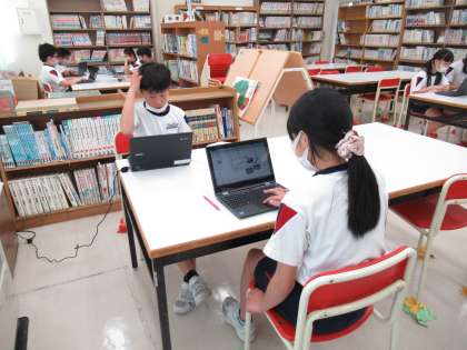 4月13日(水)社会の時間に世界の国々の特徴を本やインターネットで調べました。調べたことをみんなにパソコンで紹介するスライドをつくりました。