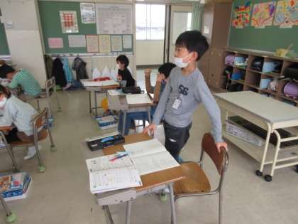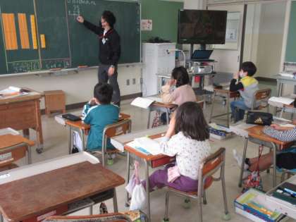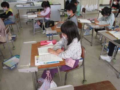 二桁の足し算の筆算について学習しています。ノートを上手に丁寧に使い、正しく計算しています。
