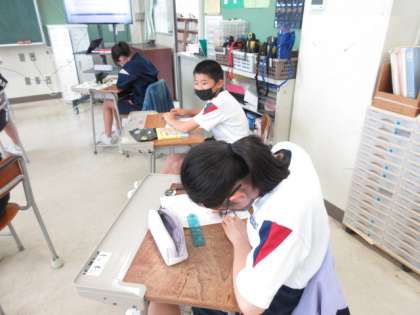 一日の自分の生活の様子を書き出して、規則正しい生活について見直しています。