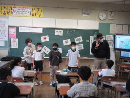 クイズやゲームを交えながら、天気に関わる英語表現を学習しています。