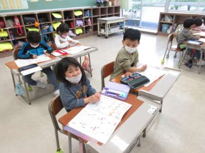 「合わせていくつ?」分配してできる数字の組み合わせを図や数値に置き換えって考えています。