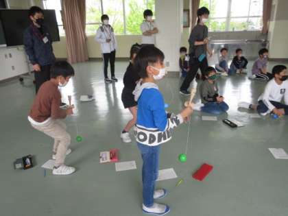今年度のけん玉級位認定会が始まりました。6級以上の人たちの認定で、ろうそく、はねけん 飛行機など、レベルの高い技に果敢に挑戦していました。