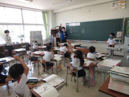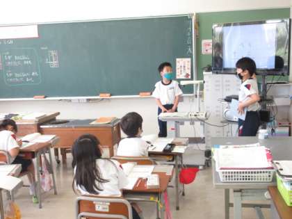 2けたの足し算の筆算の仕方について、発表した友達の考えに補足説明し、それを聞いてもう一度、自分の考えを発表しました。とても真剣に話し合っています。