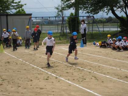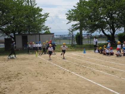 電子ピストルを使って個人走や折り返しリレーの練習をしました。