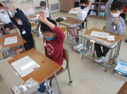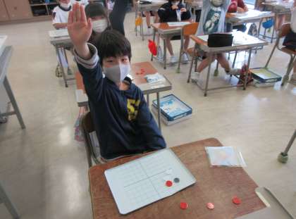 ちょうどよく代金を支払うために算数ボックスのお金で買い物の練習をしました。