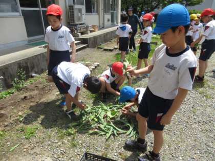 花壇にあったチューリップの球根をきれいに抜き取り、整備しました。この後のヘチマの植え替えのための準備です。