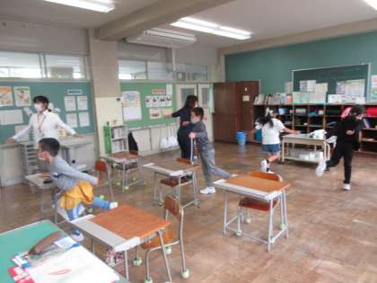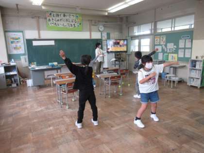 運動会のパフォーマンス合戦で踊るダンスを特訓中。振り付けもマスターし、生き生きと踊っています。