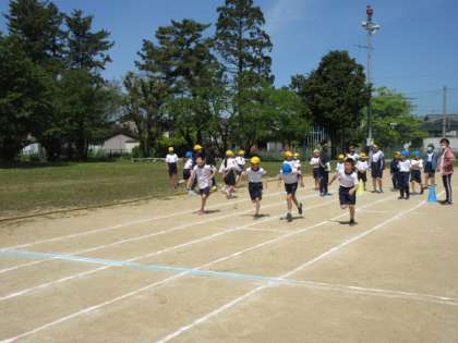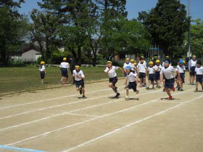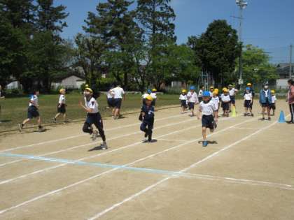 学年を問わず、何度も走る練習をしました。走るのが速いお兄さんお姉さんに引っ張られて動きが機敏に人も。