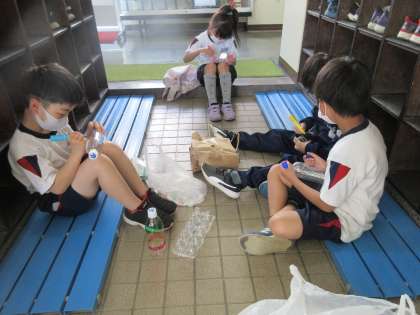 入れ物に水を入れるといった工夫もしながら、いきいきと取り組んでいました。
