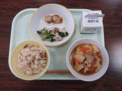 5月11日(水) 今日の給食 公開日 2022/05/11 更新日 2022/05/11 給食室から 今日の献立は、五目ご飯 ほたての香味焼き 油麩の卵とじ ブロッコリーとエリンギのソテー 牛乳 でした。