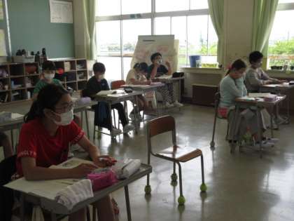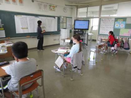 段落ごとの要点について話し合っています。集中して学習に参加しています。