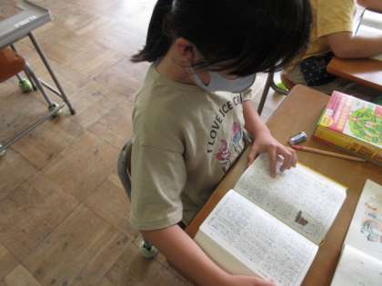 国語辞典を使って、言葉の意味を調べました。たくさん載っている意味の中で、分に合う内容を考えながら調べました。
