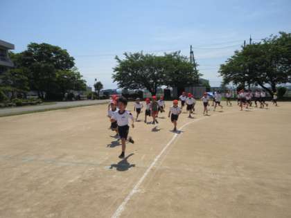 運動会は終わりましたが、全員で5分間、自分のペースでグラウンドを走りました。