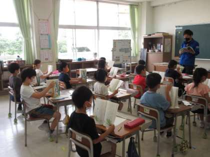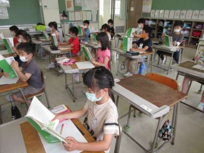 音読をしています。姿勢よく教科書をもち、集中しています。