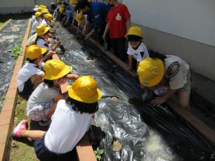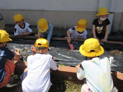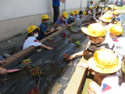 1・2年生ペアをつくり、花壇に花を植えました。お互いの連携もよく、しっかりと短時間で植えることができまそた。