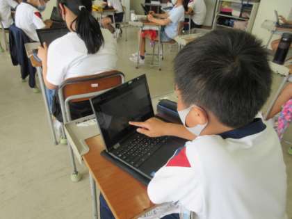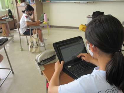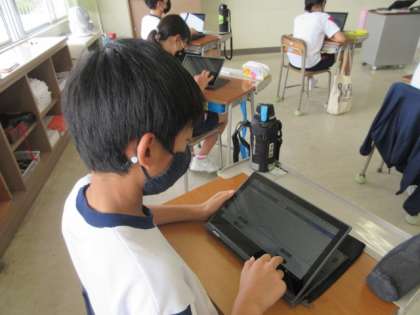 分数の割り算で学習した内容をクラウド教材で復習しています。