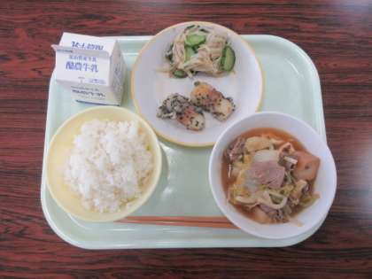 今日の献立は、ご飯 すき焼き ちくわの南部揚げ 甘酢和え 牛乳 でした。