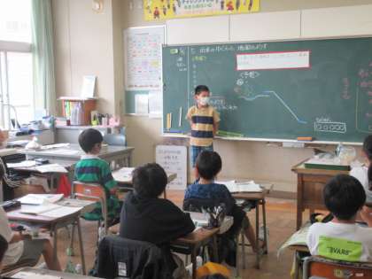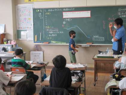 雨水は地面にしみ込むどうなるのか、自分なり予想を立てて説明しています。