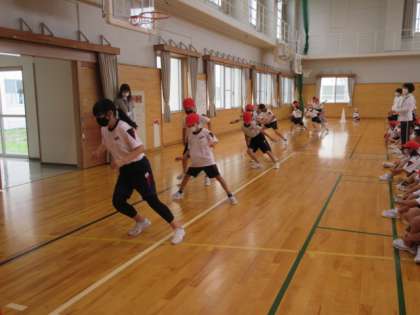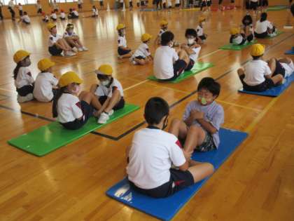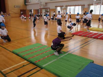 体力テストの各種目の練習2回目です。赤白青の各団でローテーションをして前回とは違う種目に取り組んでいます。