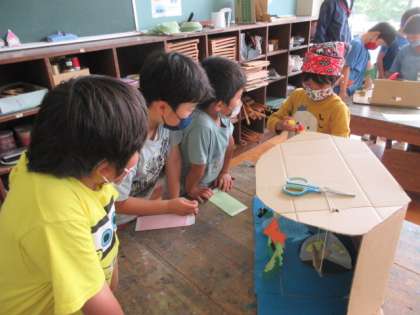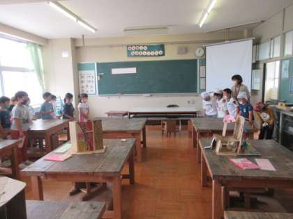 2年生も、興味津々。いろいろな質問をしたり、試しに遊んだりしました。最後にはお互いの感謝のあいさつ。とても素敵な交流でした。
