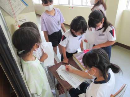 先週、図書委員会が実施した読書クイズの全問正解者8名に、お楽しみ袋が配られました。また、今週、給食委員会が実施した「かみかみビンゴ」達成者に、しおりが配られました。放送委員会の「よいところ見付け」や執行部の「ぽかぽかあいさつリレー」など、趣向を凝らした委員会イベントで、心が温まります。