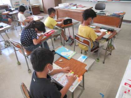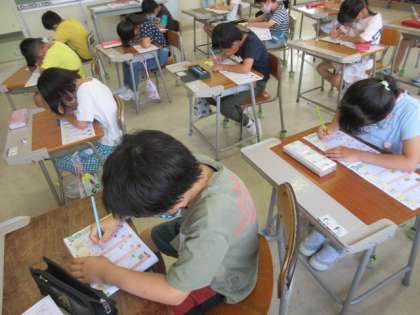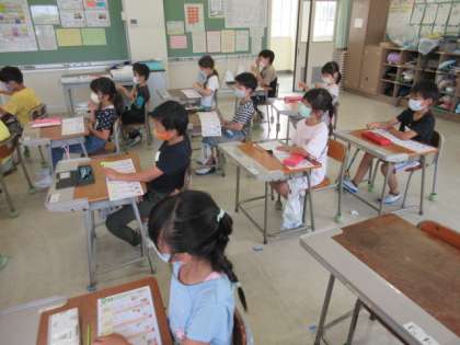 なぞり書き、指書き、試し書き、本書きを繰り返しながら、漢字練習に取り組んでいます。