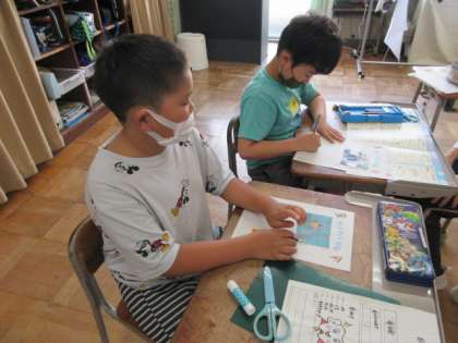 プール学習でがんばりたいことや、楽しみにしていることなどをカードにまとめています。