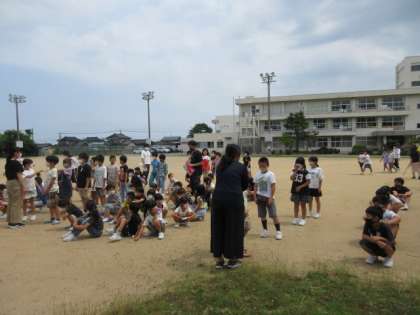 地震後の火災を想定した避難訓練を行いました。偶然にも、終了直後に起きた本当の地震。放送をしっかり聞いて、机の下で真剣に体を守る子供たちの姿がありました。