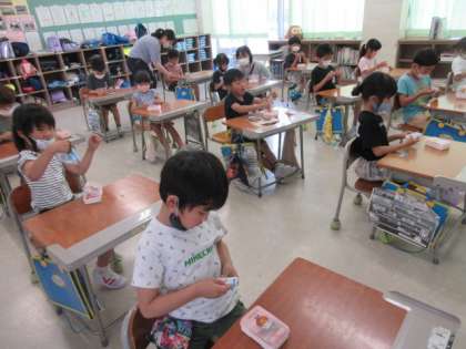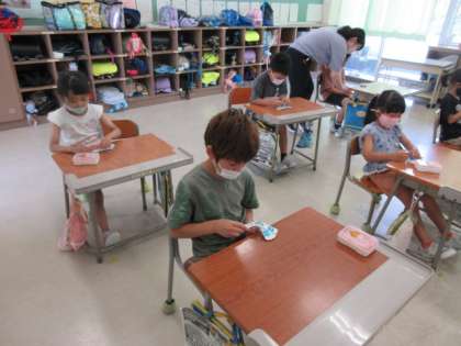 算数カードを使って繰り返し足し算の練習をしています。スラスラ言えるが増えてきました。