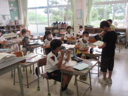 金曜日の朝は4つ葉チェックデー。保健委員会が、各教室へ行って、ハンカチ・ハナ紙・マスク・名札がそろっているかテェックします。今週は、どの学年が目標をクリアーできたでしょうか。