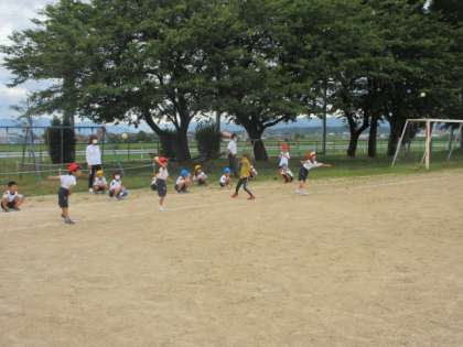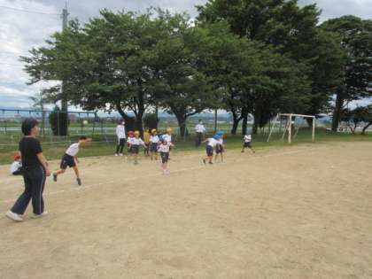 明日の体力テストに向けて、ソフトボール投げの練習をしています。