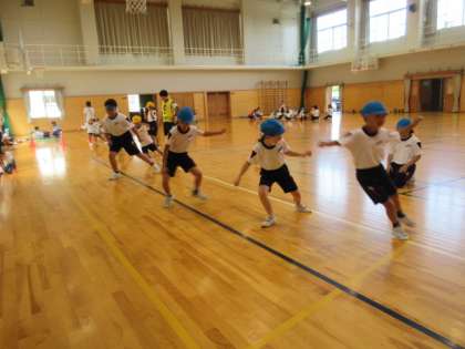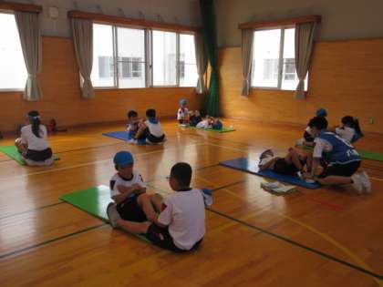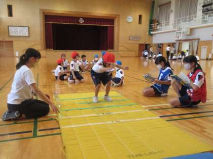 なかよし班ごとに分かれ、7種目の体力テストを行いました。