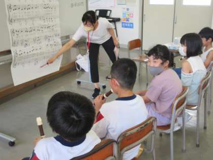 リコーダーのテストをしています。