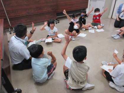 会議室で、教頭先生にインタビューしたくさんのことを教えていただきました。好きなスポーツや食べ物、家で飼っているペットなど、うなずいたりメモを取ったりしながら聞いていました。