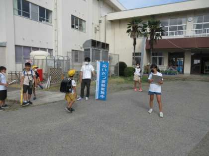 あいさつ運動2日目。本日もPTAの方に参加していただきました。今日のあいさつ名人は誰かな。