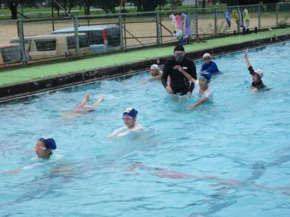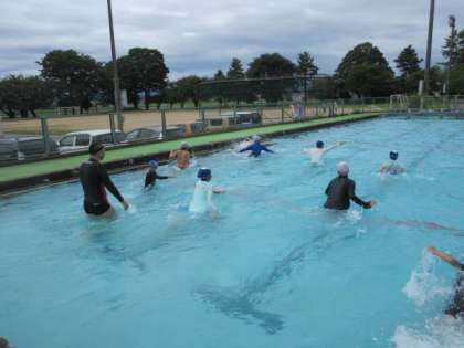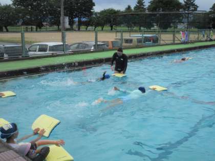 高学年は、体をしっかり伸ばし、泳ぐ練習です。練習中も少しずつ上達していく姿が見られました。